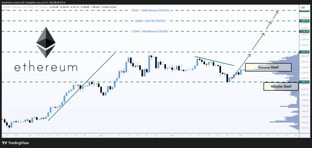 分析师Donald Dean则认为以太坊目标价看至5766美元,但目前3876美元的支撑位至关重要。