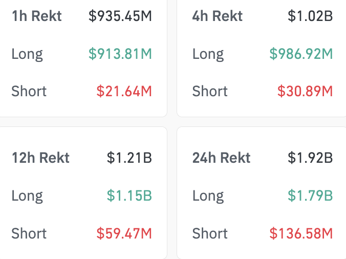 以太坊及山寨币同样扩大跌幅,以太坊(ETH)下跌超10%至2,700美元。XRP下跌9%跌破2美元,BNB下跌8.3%至830美元,Solana(SOL)下跌11%至127美元。由于比特币与山寨币的突然下跌,期货市场出现大量仓位清算。