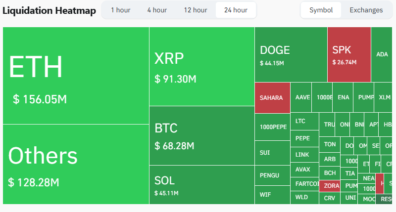当所有人同时冲向出口时,场面总是不太美妙。过去24小时,加密市场爆仓总额超过7.57亿美元,山寨币首当其冲。以太坊和XRP跌幅最大——许多交易者使用了过高杠杆。其中约6.49亿美元来自多头仓位,表明这轮下跌让许多看涨者措手不及。