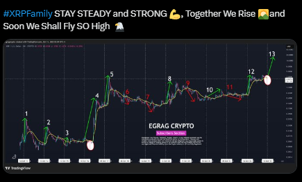 Egrag Crypto特别指出,十月历来对XRP偏向利好。历史数据显示,在十三个观测样本中有八次十月收涨。