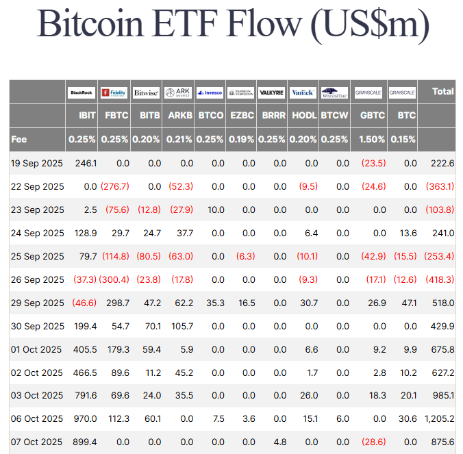衍生品数据显示,比特币期货未平仓合约减少1%至902.9亿美元。推动本轮上涨的关键因素之一,是持续升温的机构兴趣——过去几天BTC ETF资金流入始终占据比特币新闻头条。