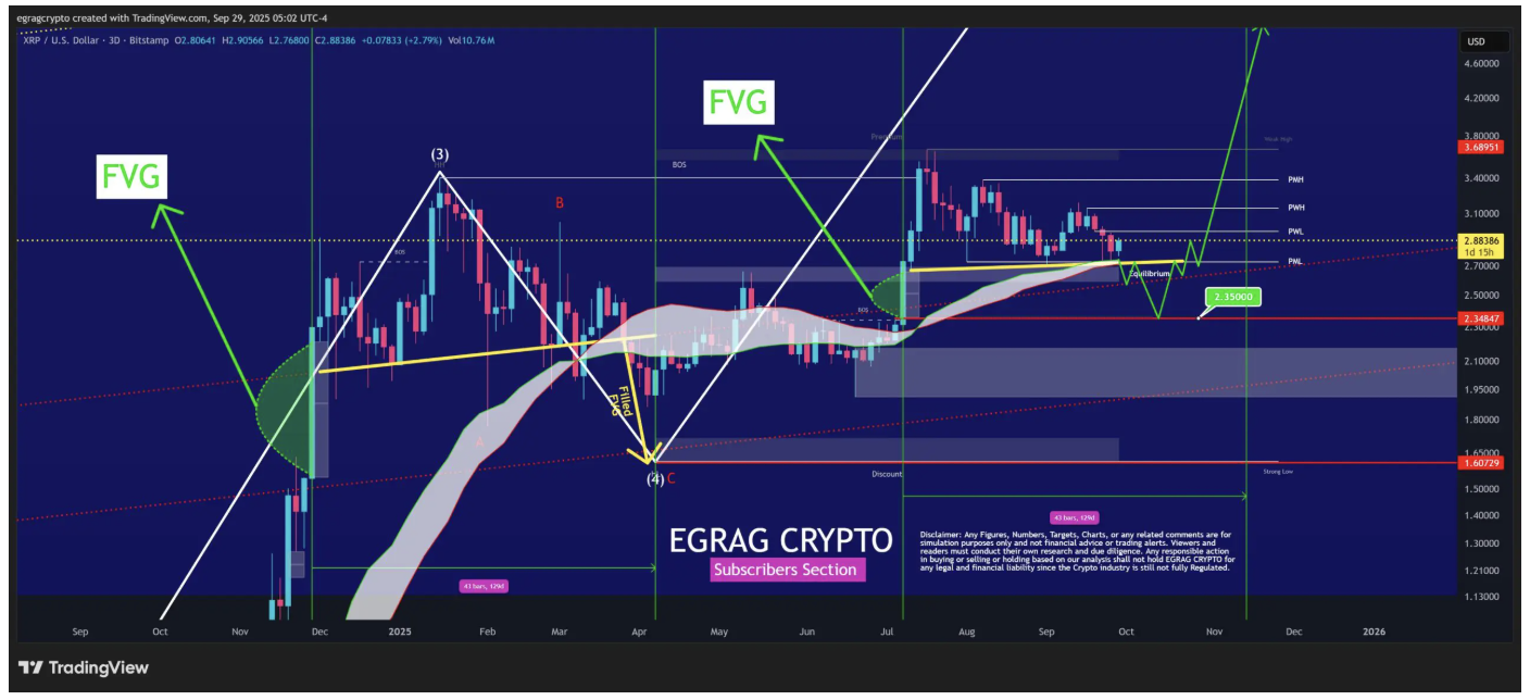 加密货币分析师EGRAG CRYPTO指出:XRP深度回调或为长期走强铺路