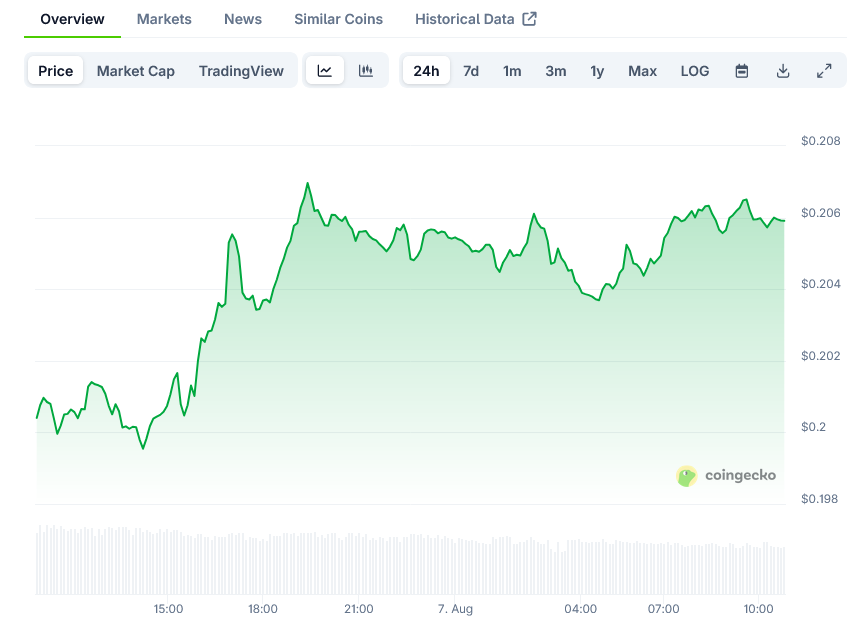 虽然这些信号表明看涨压力减弱,但也意味着技术指标正从超买状态重置。若支撑位保持稳固,这种调整为更健康的上涨奠定了基础。当指标完成重置时,若0.19美元支撑位有效,最可能出现的走势是反弹至0.22-0.24美元区间,突破0.24美元阻力位后将挑战0.30美元心理关口。