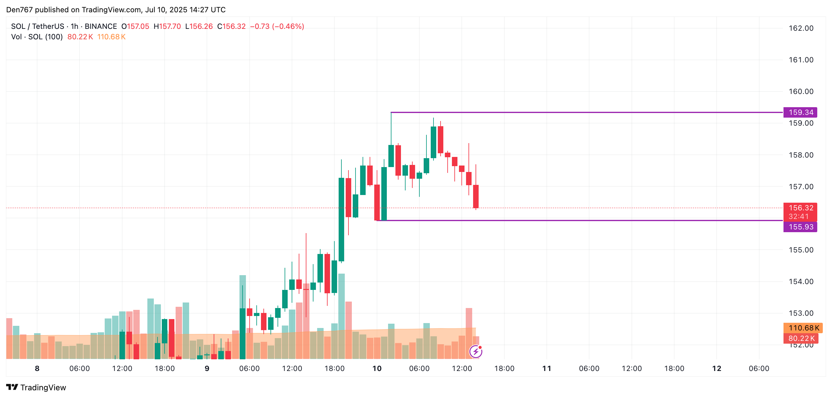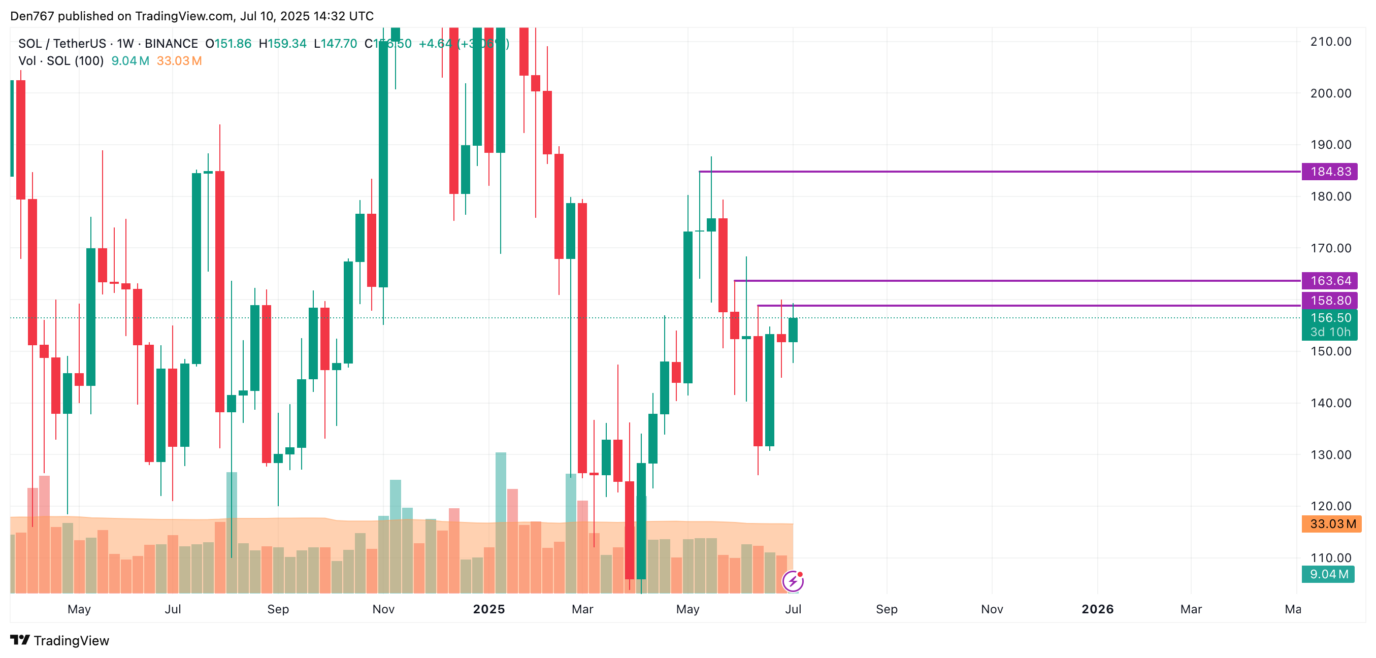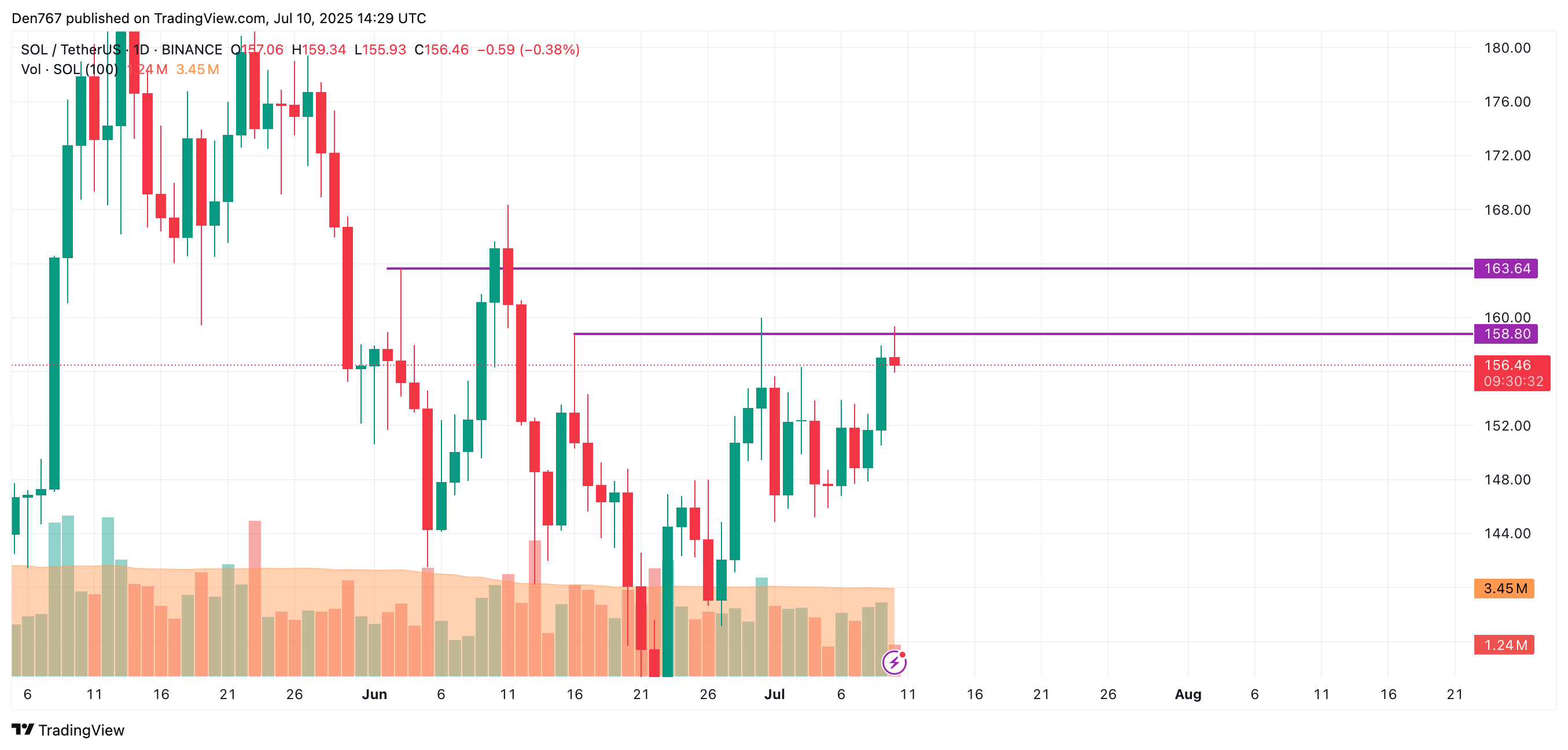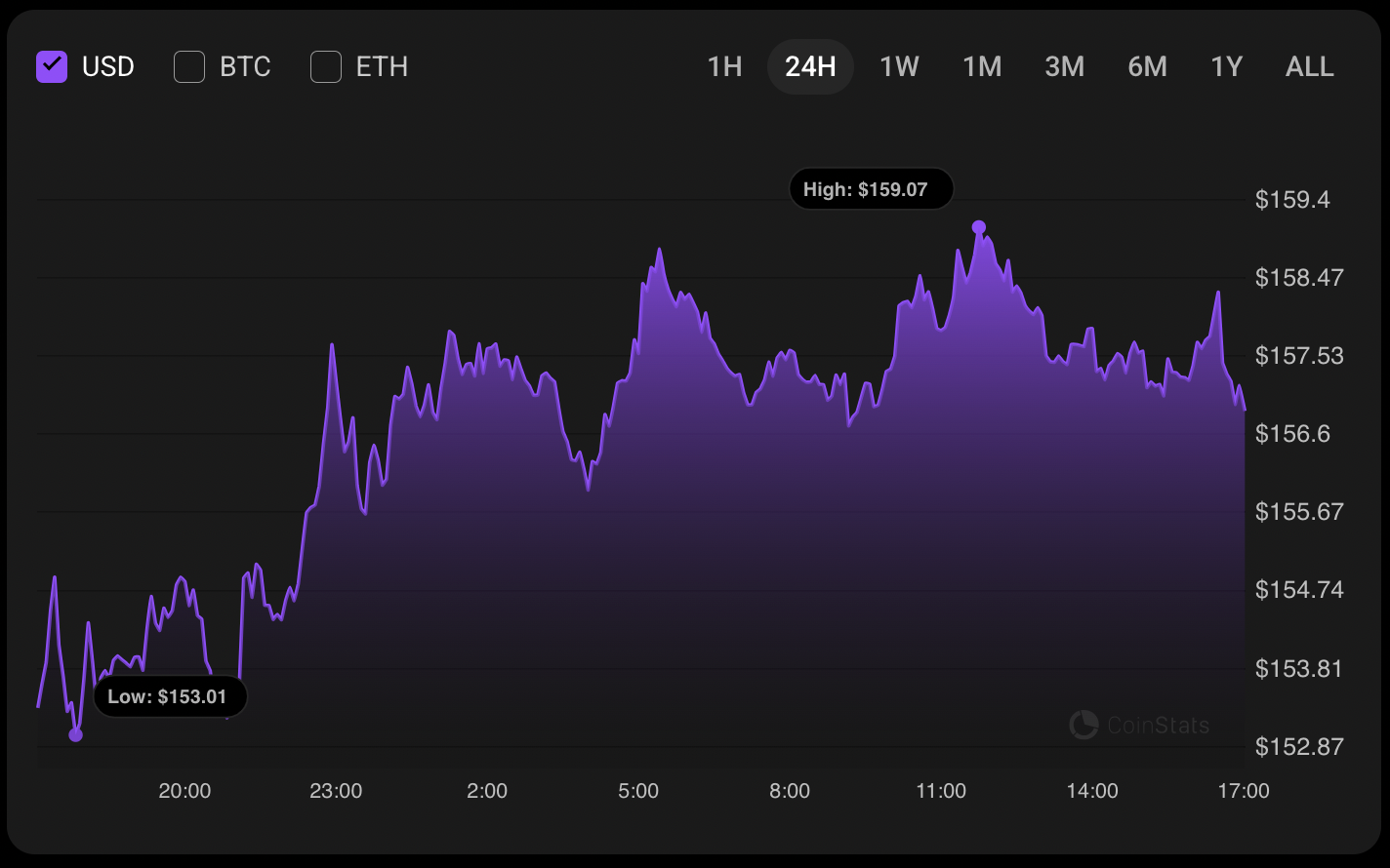 截至发稿时,SOL交易价格为156.50美元。