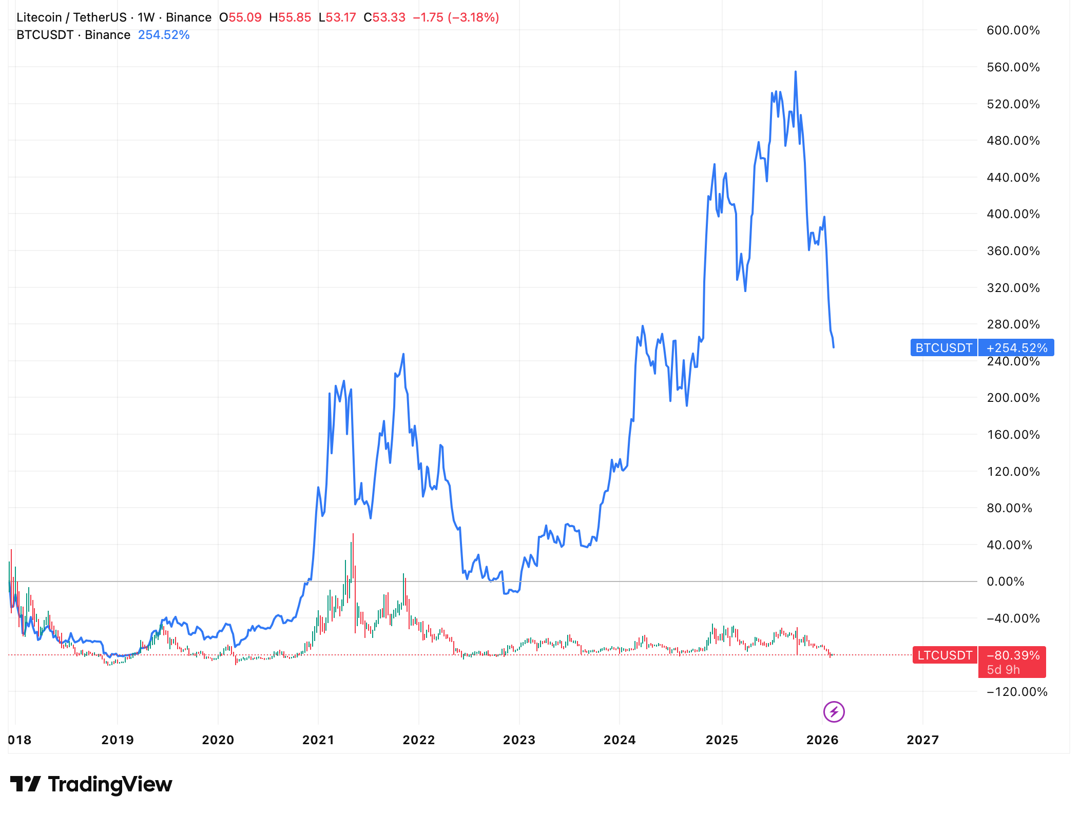 作为历史最悠久、活跃交易的加密货币之一,莱特币继续充当流动性桥梁和交易资产,但其价格表现已落后于市场上的新兴叙事。