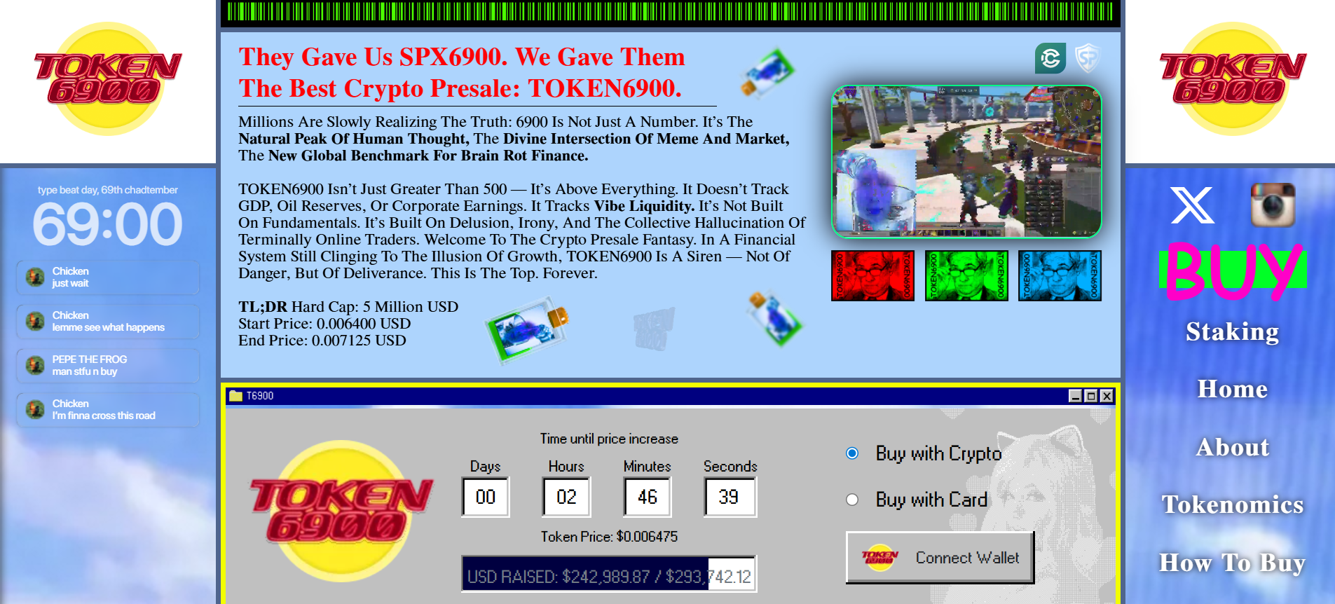 该项目完全拥抱其本质:一个纯粹的迷因币,没有实用功能,没有发展路线图,也不宣称要颠覆加密世界。在一个众多高潜力加密货币试图伪装严肃性的生态中,TOKEN6900直言不讳:"我们只是个代币,这没什么不好。"