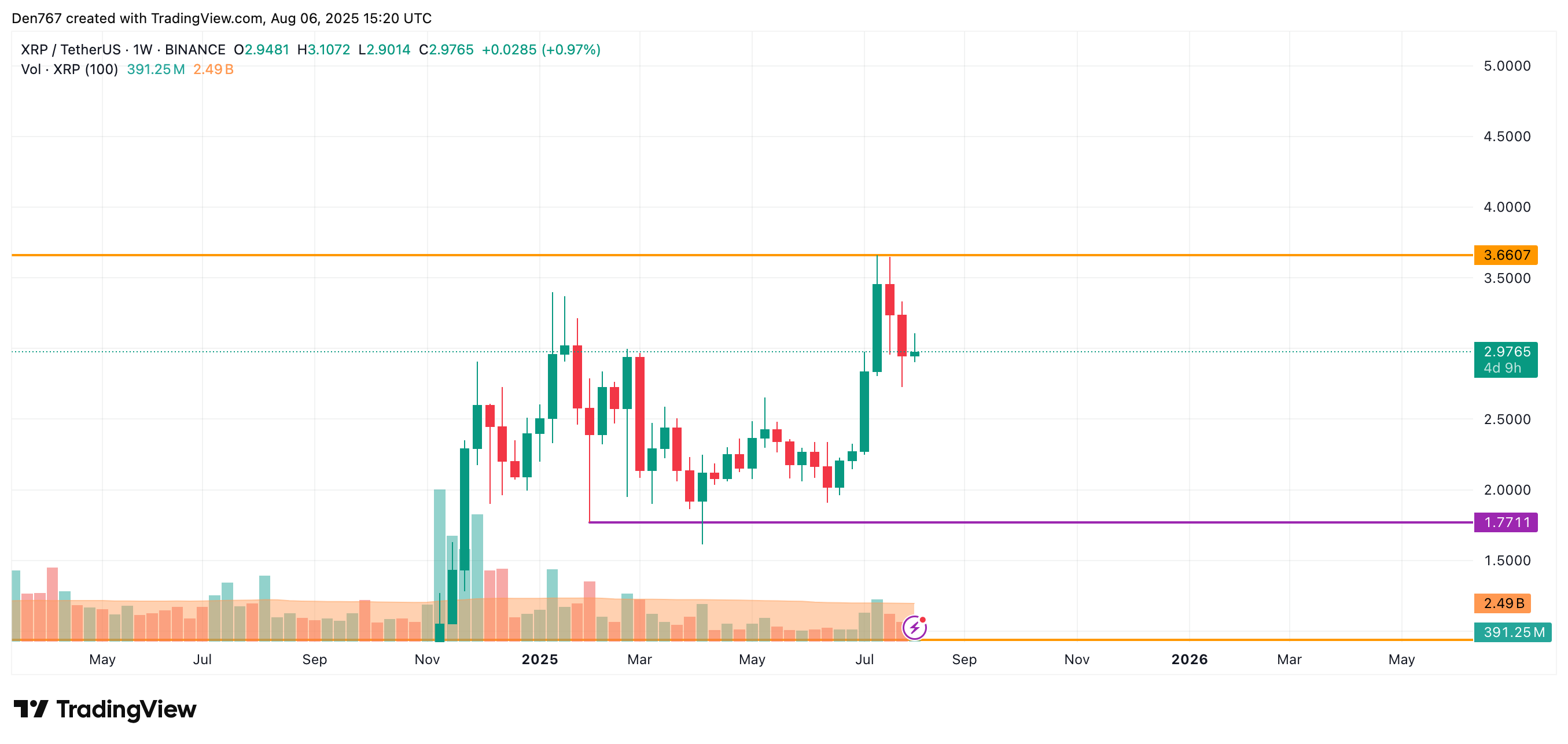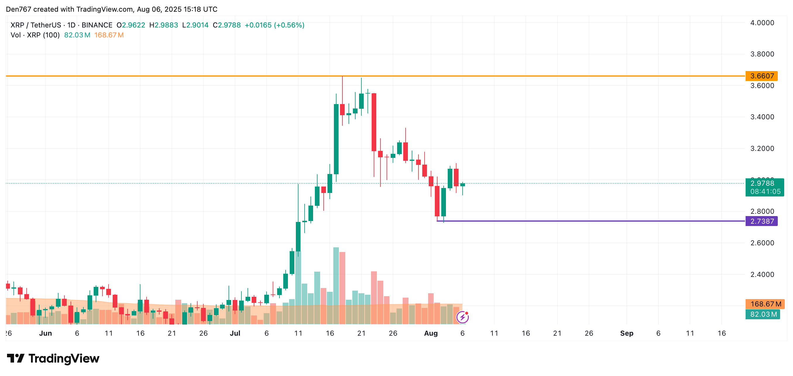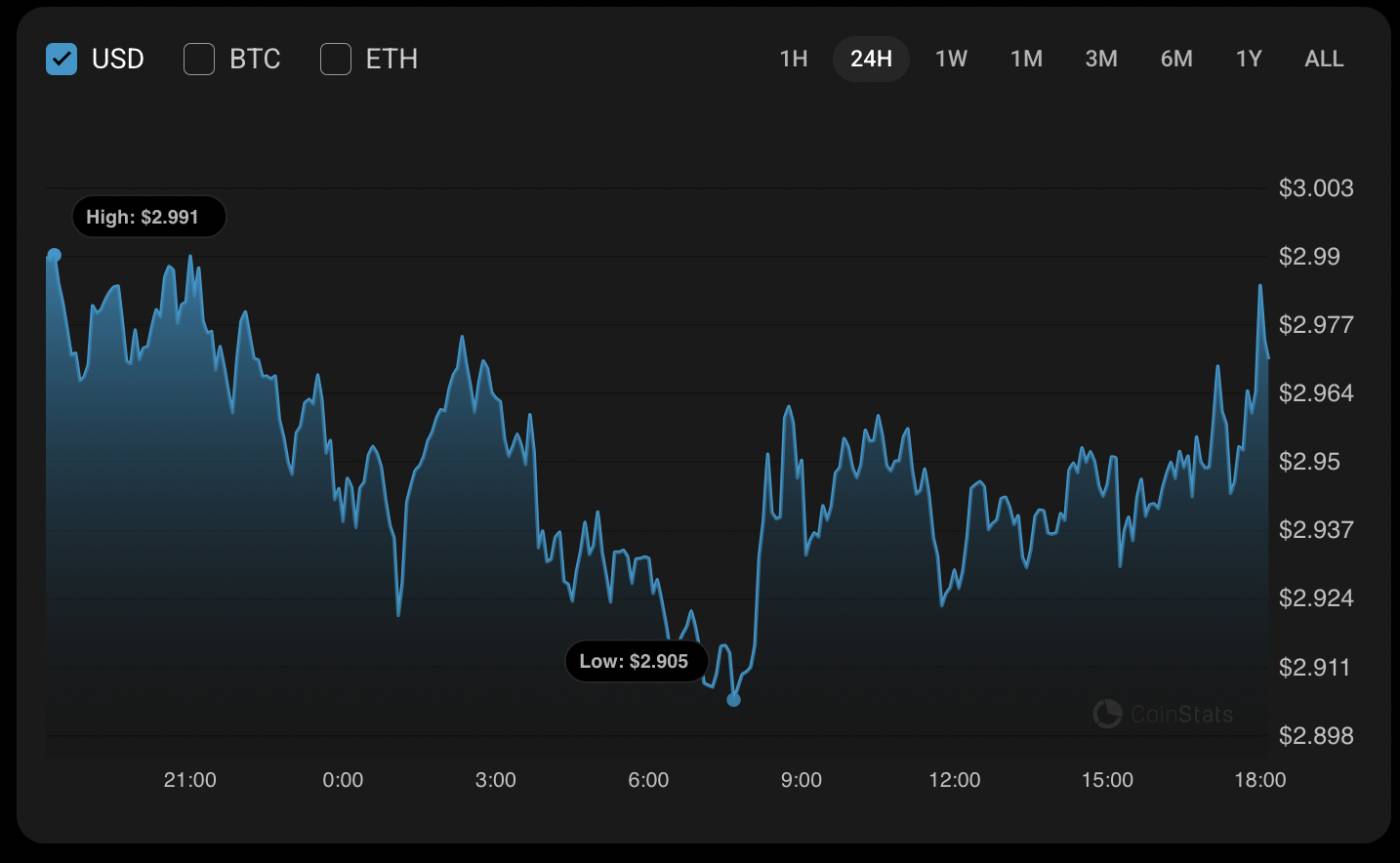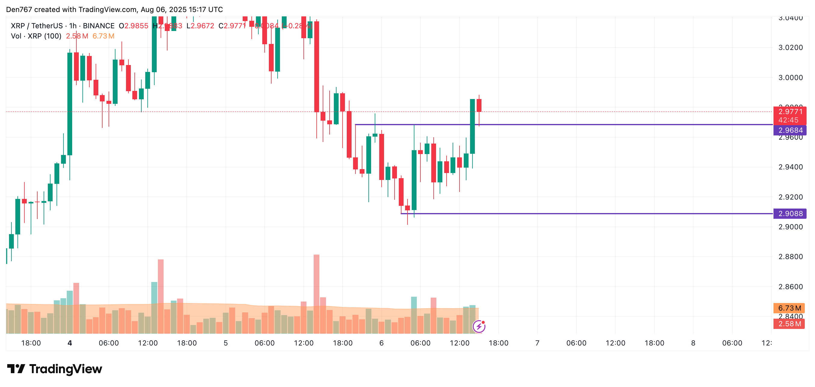 小时线图上,XRP价格已稳固在2.9684美元的关键位置上方。若多头能保持优势且日线收盘价维持该水平之上,预计将继续上探3美元关口。