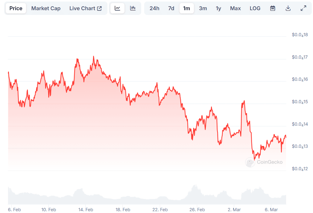 在本轮牛市中,第二大模因币SHIB曾多次录得显著涨幅。然而,最近其价格表现不佳,远低于峰值水平。截至本文撰写时,Shiba Inu(SHIB)的价格约为0.00001349美元,月跌幅达18%。