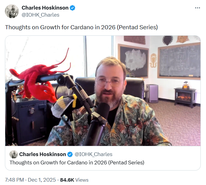 查尔斯·霍斯金森在近期社区更新中阐述了2026年发展路线图,提出由卡尔达诺基金会、Emurgo、Input Output、Midnight基金会及Intersect五大组织协同推进的战略规划。