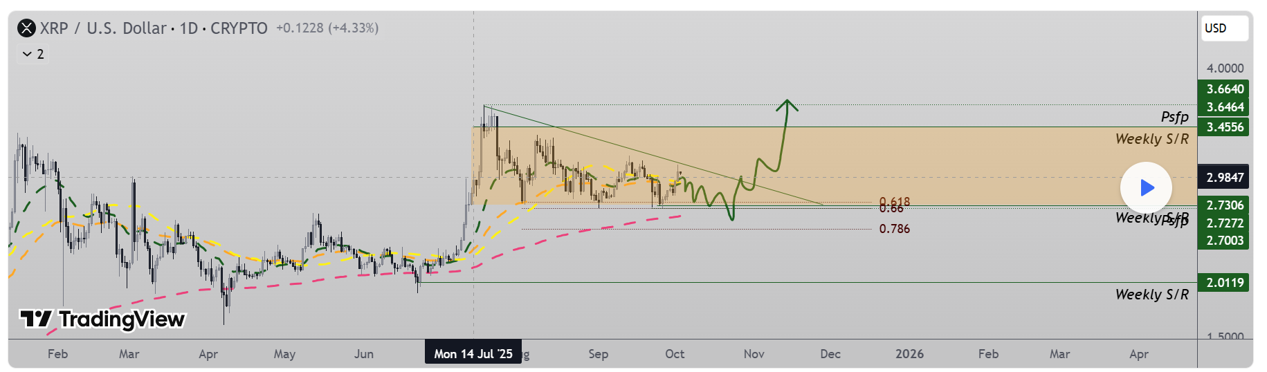 瑞波币XRP正受益于全球支付走廊对其重新燃起的兴趣。近期一些报告显示,XRP已回升至3美元以上水平,这激发了市场对其进一步上涨的乐观情绪。瑞波的合作伙伴关系及面向机构的策略仍是其核心叙事。