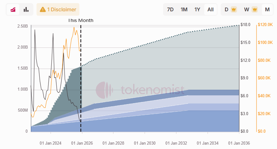 但需注意,预计明年代币供应量将增至17.47亿,可能抑制价格上涨。尽管此前供应量不足3亿时价格处于低位,但当供应量飙升至6.3亿时价格曾逼近17美元。去年供应量突破10亿期间,价格峰值达到13美元。随着供应量持续增长,价格下行压力或将延续。