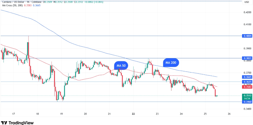 卡尔达诺(ADA)在圣诞节交易淡静期间出现显著下跌,24小时内跌幅达2.09%至0.35美元。周线损失扩大至3.67%,反映出ADA正跟随整体市场波动。小时图上的急剧下跌导致意外多头清算,打断了早间的上涨势头。