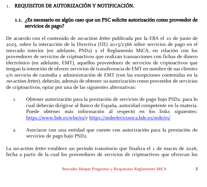 文件明确了适用企业范围、MiCA与现有国家注册制度的衔接关系,以及企业应如何执行CNMV已设立的授权与备案流程。问答文件还解释了过渡期内授权相关通知和跨境业务应如何处理,并强调企业必须严肃对待过渡期截止日期。