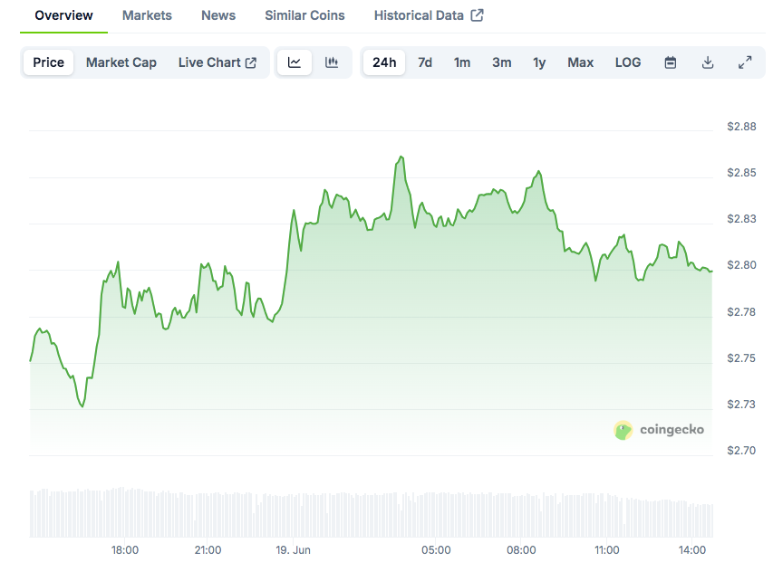 据CoinGecko数据,当前SUI交易价约2.80美元,正处于2.85美元阈值下方显示短期犹豫。但只要维持在2.39美元支撑上方,上行趋势仍具效力。Naveed强调收复3.83美元中位线对确认持续上涨至关重要,该价位与历史盘整区重合可能形成阻力。若突破成功,下一目标将指向4.31美元供应区——该位置可能引发卖家回归,届时SUI将从当前区域实现超44%涨幅。