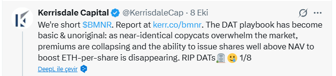 以做空闻名的Kerrisdale资本近日宣布做空Bitmine(BMNR)股票,此举标志着预见加密储备公司崩盘的序幕。值得注意的是,包括美日德在内的全球主要交易所中,尚未有企业成功建立加密储备公司架构。但部分公司已发现将加密货币作为储备资产以人为推高股价的运作手法。