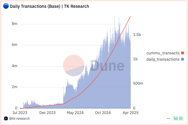 这种韧性表明,与其他链相比,Base网络继续保持相对增长。更重要的是,Base的累计收入在2025年2月28日突破1亿美元,同时每日交易量也保持相对稳定。