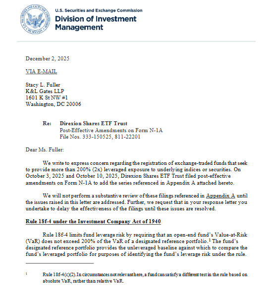 此举在近期批准加密货币挂钩和复杂交易产品的开放ETF审批环境中显得尤为突出。然而当涉及高风险杠杆策略时,SEC如今显得更为审慎。