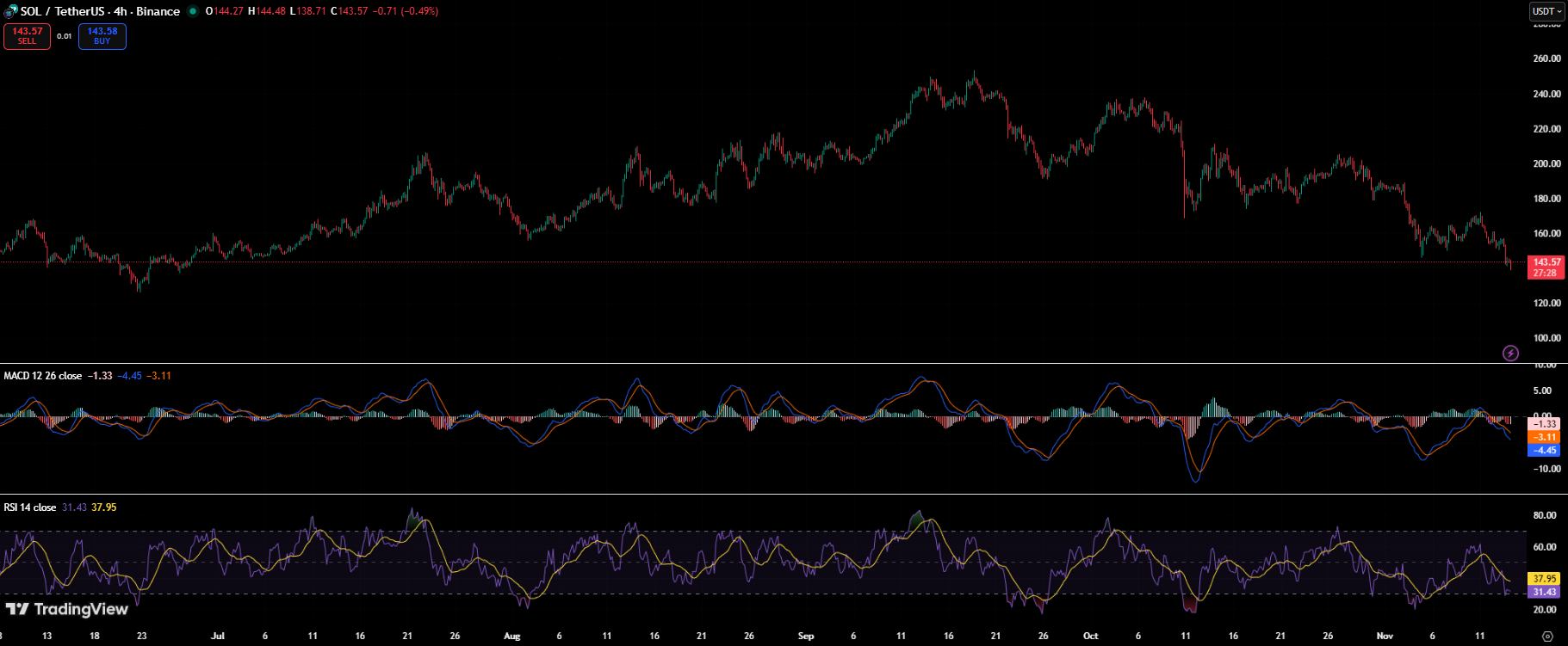 但眼下市场焦点全在技术防御。若Solana能守住135-144美元区间并消化强制卖盘,需求或在12月前趋稳。反之,价格可能在杠杆风险出清及现货买家重拾信心前持续向下寻底。
