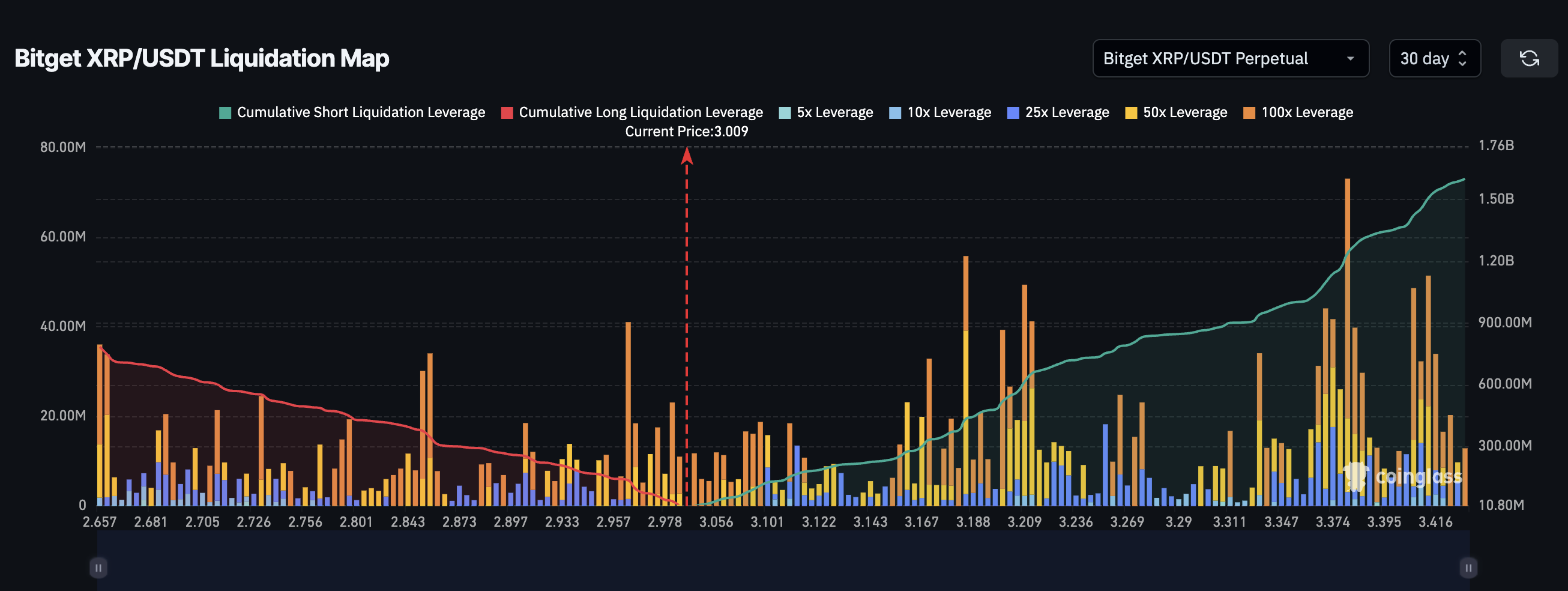 3.3美元不仅是整数关口,更与斐波那契关键位及大宗清算区间重合。突破该位置可能引发连锁清算助推涨势,但在触及3.45美元(斐波那契目标位)前,3-3.3美元间的波动仍应视为空头挤压而非真正上涨。若失守2.72美元支撑,则看涨结构将失效。