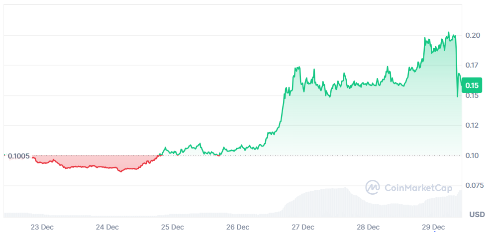 LYN在过去七天上涨近60%。该数字资产自12月26日从0.09美元水平启动显著涨势,于12月29日突破0.15美元高点。