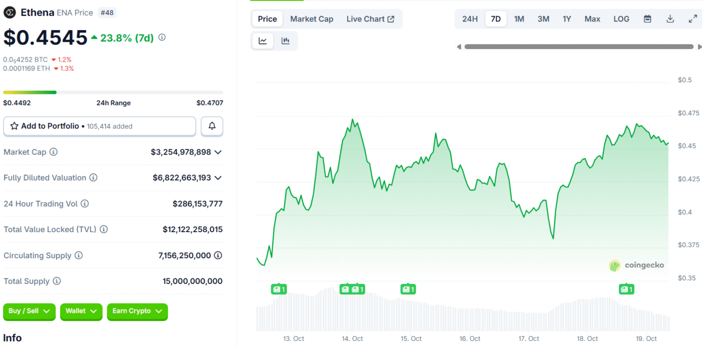 Ethena在整体市场抛售中展现出惊人韧性。当加密货币市场近期蒸发超12亿美元多头头寸时,ENA逆势上涨8%,这归功于巨鲸持续吸筹及总锁仓价值(TVL)突破124亿美元的亮眼表现。