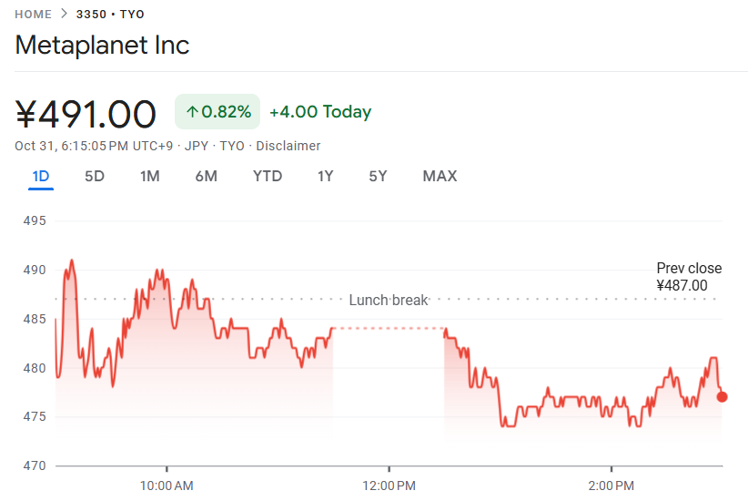根据谷歌财经数据,截至发稿时MTPLF报价约491日元(3.19美元)。过去24小时内上涨0.8%,近五个交易日累计涨幅达3.8%。