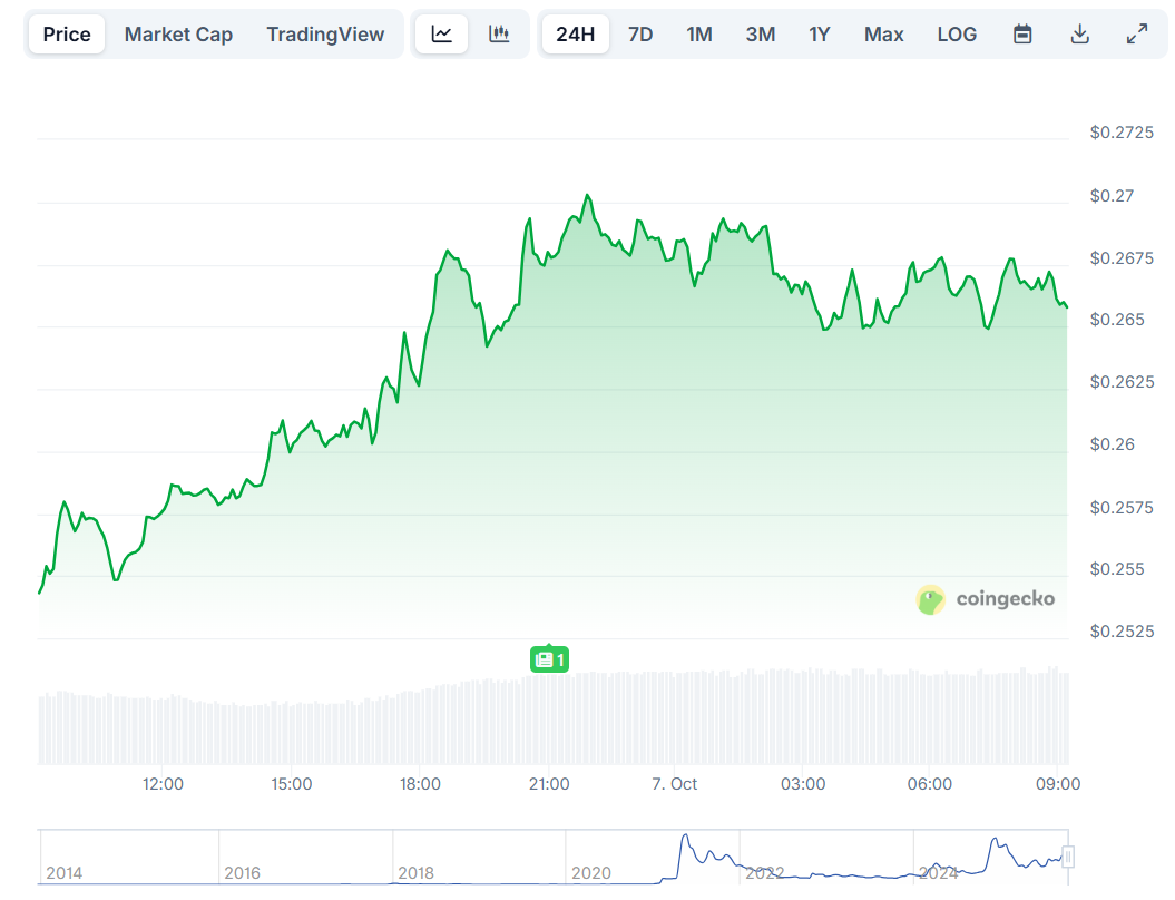 十月正以其"上涨十月"的绰号应验着,加密货币市场全面亮起看涨信号。近期狗狗币价格突破关键阻力位,数周来首次站上0.26美元关口。分析师认为若当前趋势延续,DOGE本月可能再涨50%。