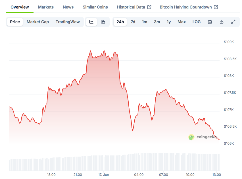 数据显示比特币现报106,248美元,24小时下跌0.64%。尽管价格下跌,但交易量较前日增长超47%,表明市场对BTC接近关键支撑位的兴趣升温。
