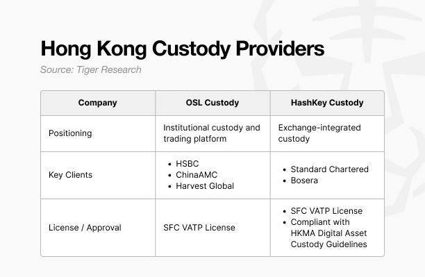 证监会2023年推出VATP制度,要求交易所与托管双授权。OSL为四分之三的现货ETF提供托管,HashKey与渣打合作提升法币通道效率,形成"监管+银行合作"特色模式。