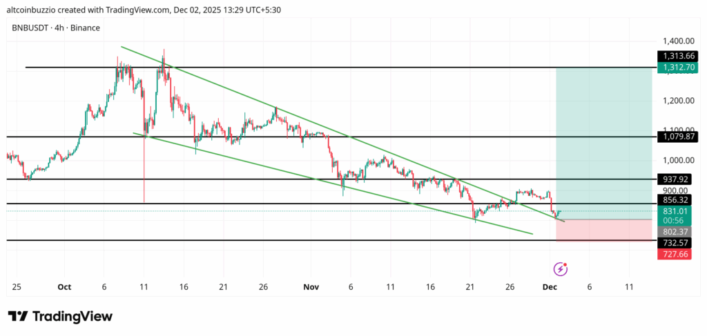 EMA50位于850美元,EMA100位于780美元,BNB现价830美元。通过对比这些数值判断趋势方向。