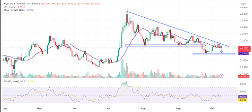 相对强弱指数维持在46附近,表明动量呈中性但略偏看跌。交易者正密切关注Algorand会否再次测试0.20美元区域——该位置已成为新的局部支撑。守住该水平可能形成双底形态,这种经典的反转模式往往预示趋势可能衰竭。