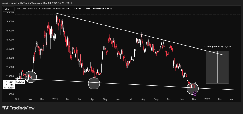 21Shares与Canary Capital的SUI ETF申请需待2026年1月SEC决议。若获批将显著提升代币资质,类似2024年初比特币ETF通过后的资金流入盛况。但若进程延迟,价格或将继续受限于长期通道。