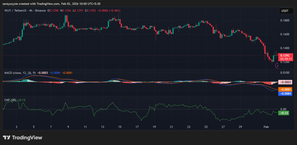 资金流量指标处于-0.13水位,显示资金正持续流出该资产。WLFI市场的卖压明显超越买盘兴趣,持续负值读数印证需求疲软与看空情绪。