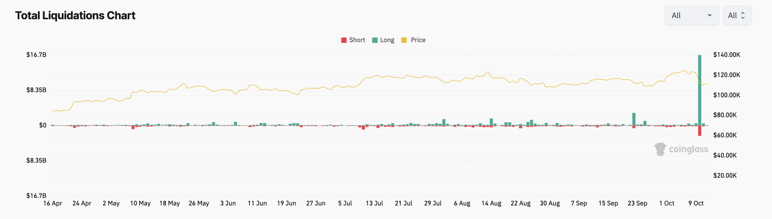 市场崩盘期间,超过200亿美元的加密仓位被清算,是2020年3月新冠疫情抛售期间清算量的20倍以上。超过160万交易者因使用杠杆(用于放大交易的借贷资金)遭遇强制平仓。