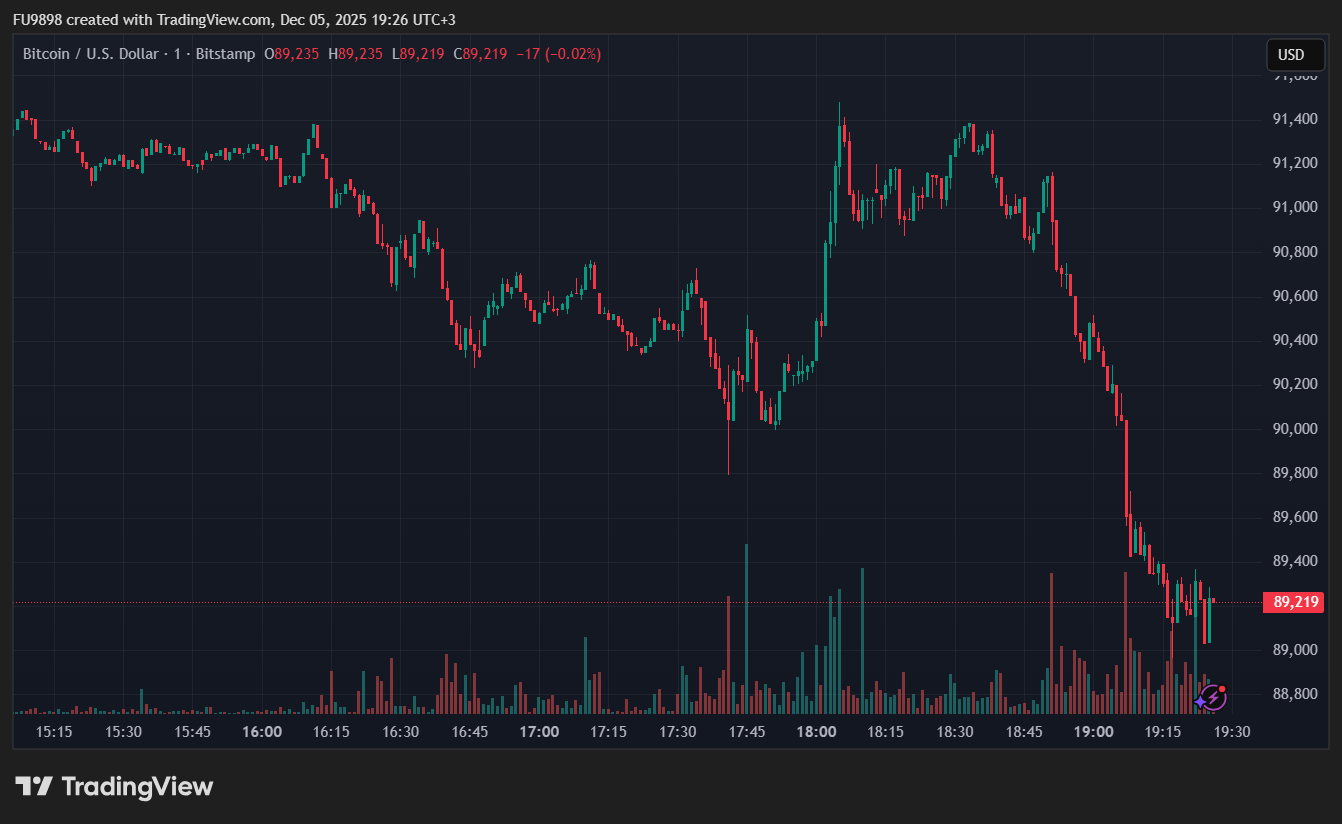 在市场的剧烈波动中,比特币(BTC)价格突然跌破90,000美元。过去一小时内,BTC跌幅接近2%,最低触及88,964美元。这一波动引发了大规模的清算,尤其是高杠杆仓位。