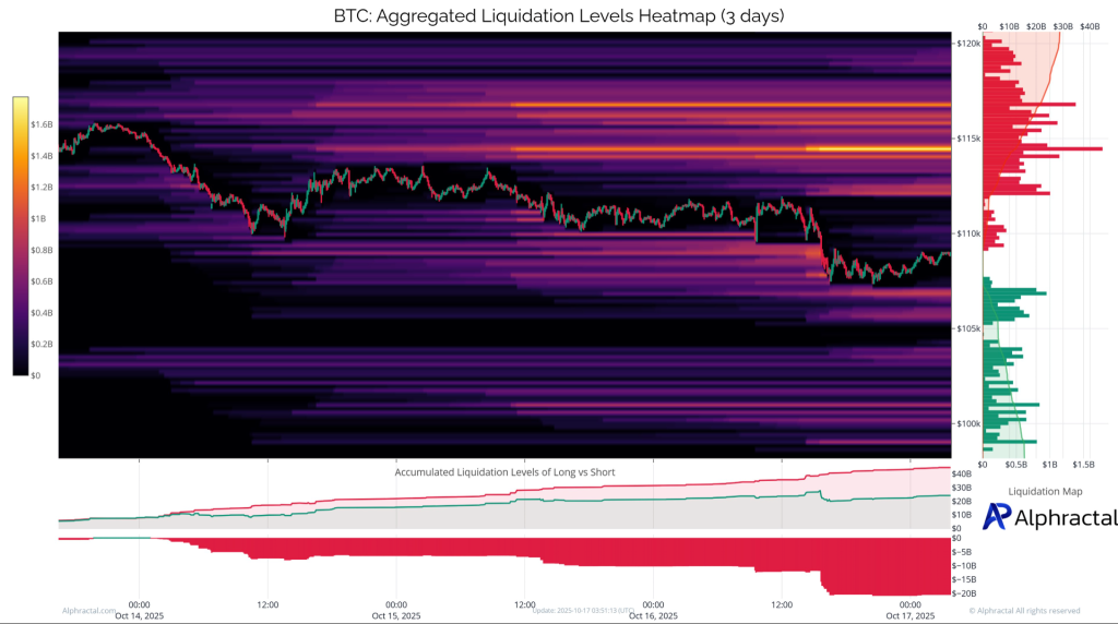 热力图表显示11.5万-11.7万美元区间存在空头挤压潜在风险。