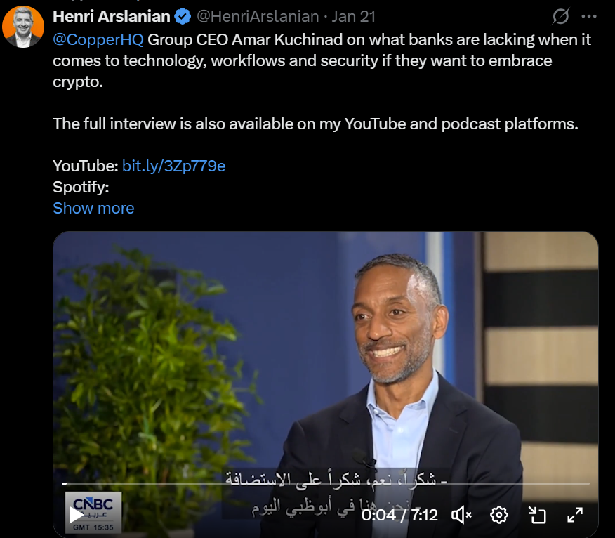 Copper由巴克莱银行支持,提供机构级托管、结算和抵押品管理服务,旨在帮助金融机构存储和转移数字资产,同时降低交易对手风险。据Cointelegraph去年报道,Cantor Fitzgerald选择Copper作为比特币托管商,与Anchorage Digital并列。Copper还与Coinbase合作,为机构客户提供场外结算便利。