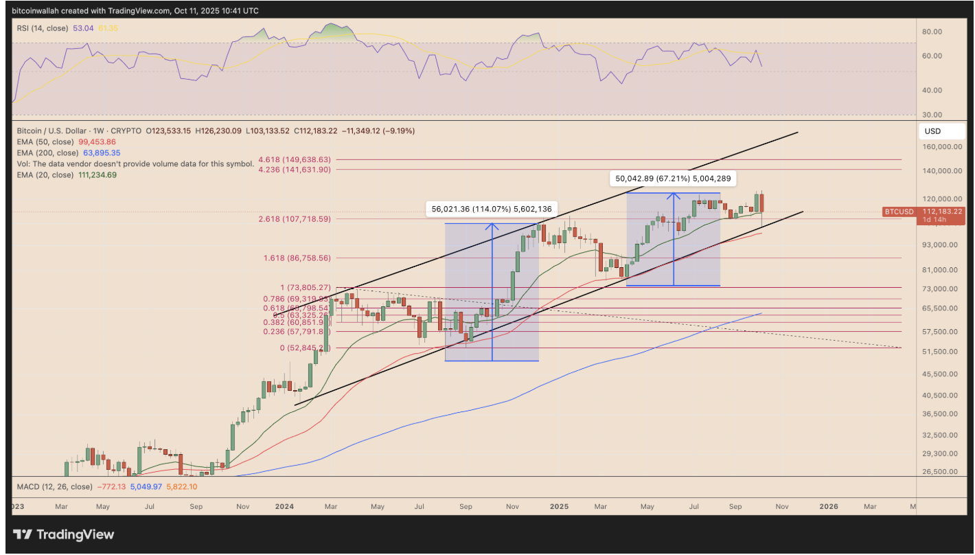 分析师Michaël van de Poppe强调比特币需维持在20周移动平均线(20W MA)上方的重要性。若能守住该位置,可能标志着新上升浪的开始,类似新冠疫情崩盘和FTX危机时期的情况。据该分析师预测,年底目标价可能达到140,000-150,000美元区间。