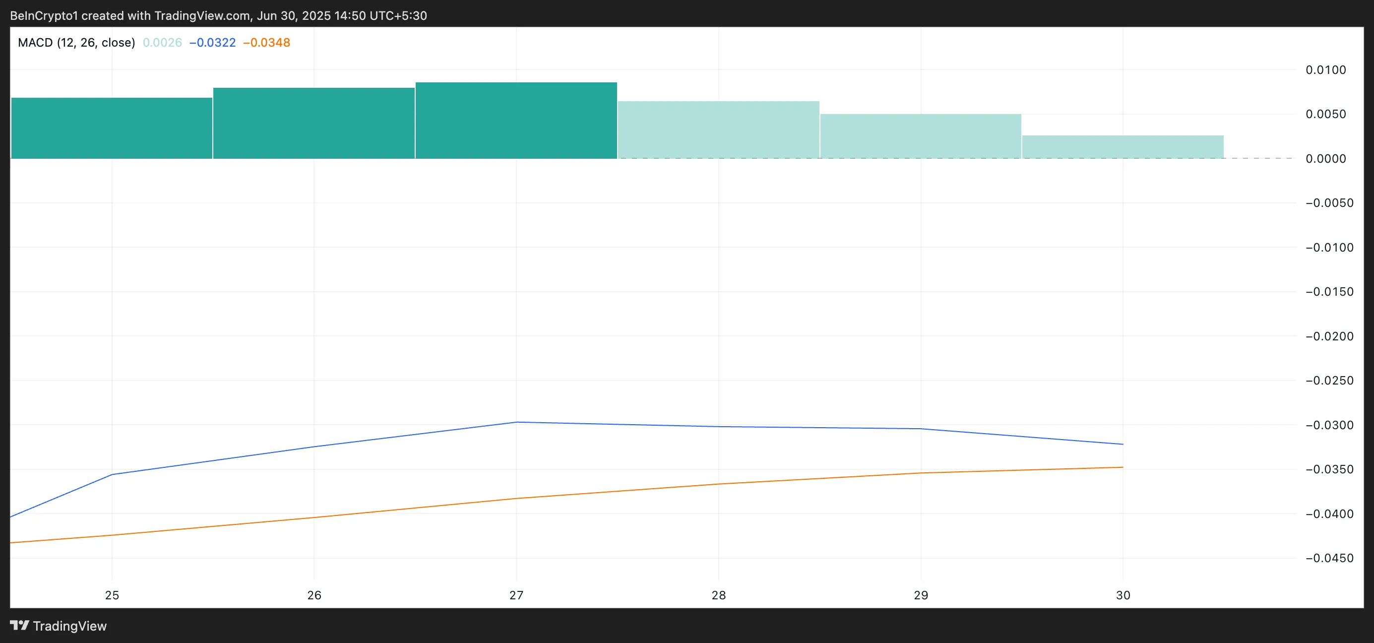 此外,PI的MACD指标也佐证了这种看跌倾向。截至发稿时,PI的MACD线(蓝色)仍位于信号线(橙色)下方。