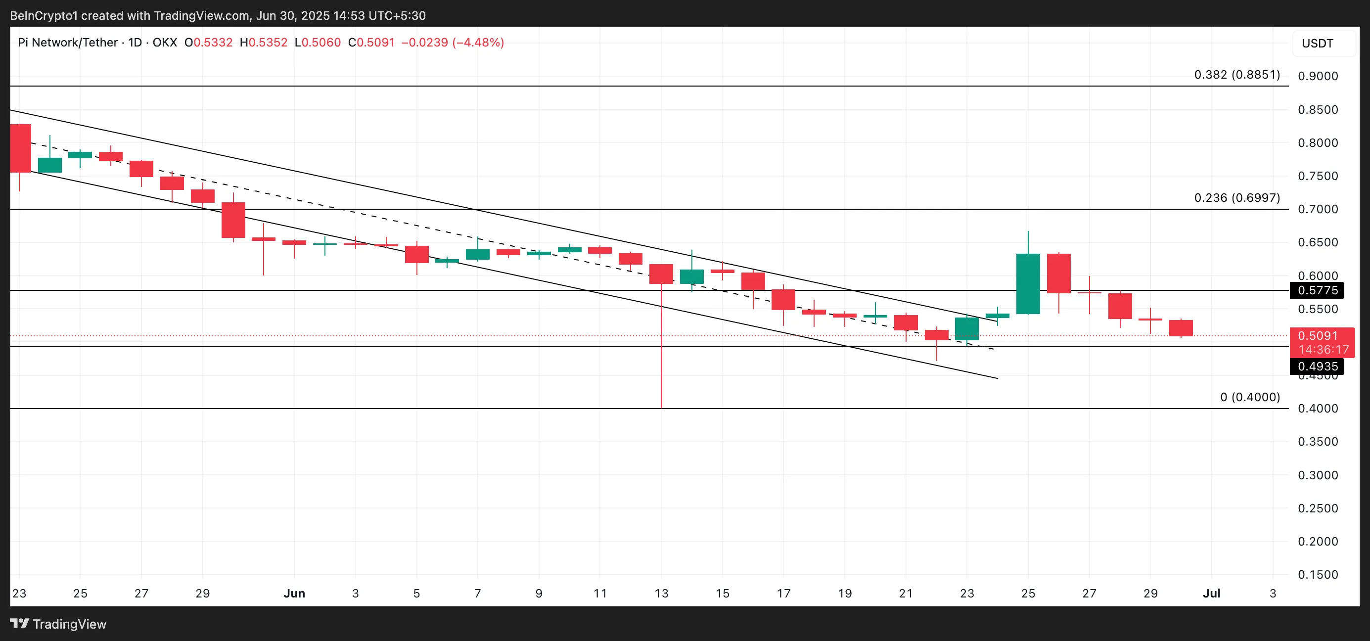 反之若市场情绪转变且买盘激增,PI价格可能反弹至0.66美元。