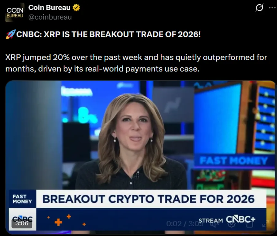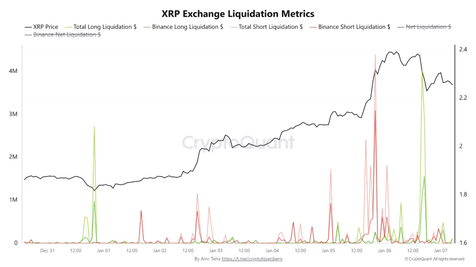 本周的清算事件与2025年下半年市场崩盘前观察到的环境类似。这表明,随着2026年市场季的开启,瑞波币吸引了大量的衍生品交易活动。