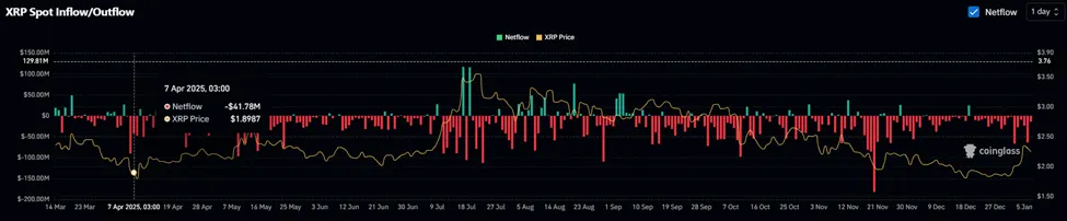 尽管价格走势看涨,但2026年第一周瑞波币的现货资金流仍为负值。实际上,现货资金流显示出抛售压力激增,这可能意味着聪明资金正利用近期的需求作为退出流动性。
