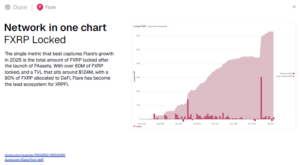 Flare与XRPFi聚焦于基于XRP的活动。在推出FXRP后,锁仓FXRP超过6000万枚,DeFi协议使用了约80%的FXRP,总锁仓价值接近1.24亿美元。