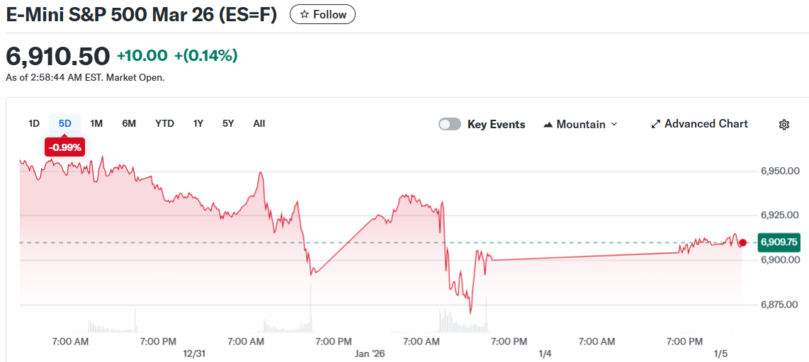 纳斯达克100指数期货上涨约0.5%。投资者权衡委内瑞拉局势在进入2025年第一个完整交易周所带来的影响。