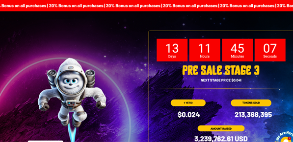 为了鼓励参与,投资者在所有购买中获得20%的奖励,投资500美元或以上的投资者还可获得额外5%的奖励。Yeti Ouro网站上的倒计时显示,第三阶段还有几天时间,第四阶段价格将上涨至0.041美元,涨幅超过70%。