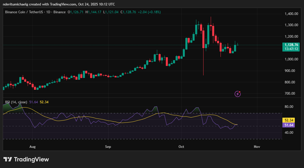 赦免消息直接刺激了BNB价格走势。本周初该代币曾跌至1052美元低点,现已回升至1100美元上方,截稿时报1128美元。