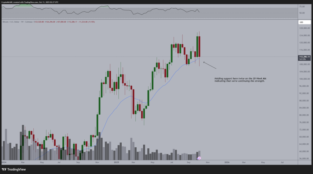 市场分析师迈克尔·范德波普表示比特币走势取决于20周均线(现位于11.2万美元附近)的防守情况。"若守住该支撑并开启反弹",他分析称,"此次下跌或标志最后投降阶段的终结"。