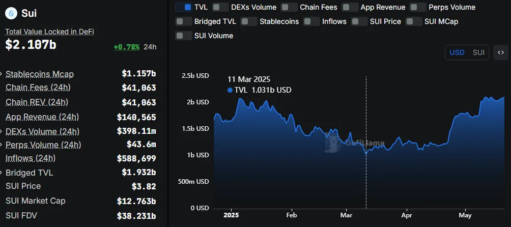 Sui Network总锁仓价值突破21亿美元大关