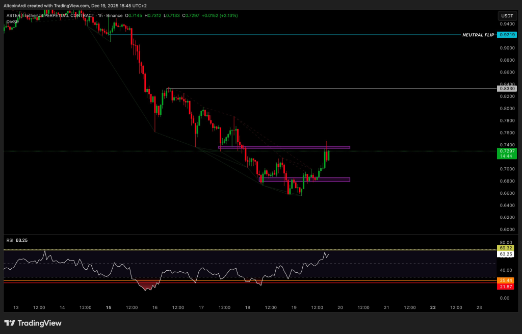 Aster价格现处于平静而重要的阶段。后续走势将揭示整理能否在支撑位附近持续,抑或Ardi描绘的宏观下跌趋势继续展开。无论如何,图表暗示这个故事仍在书写中,下一篇章的到来可能比许多人预期的更早。