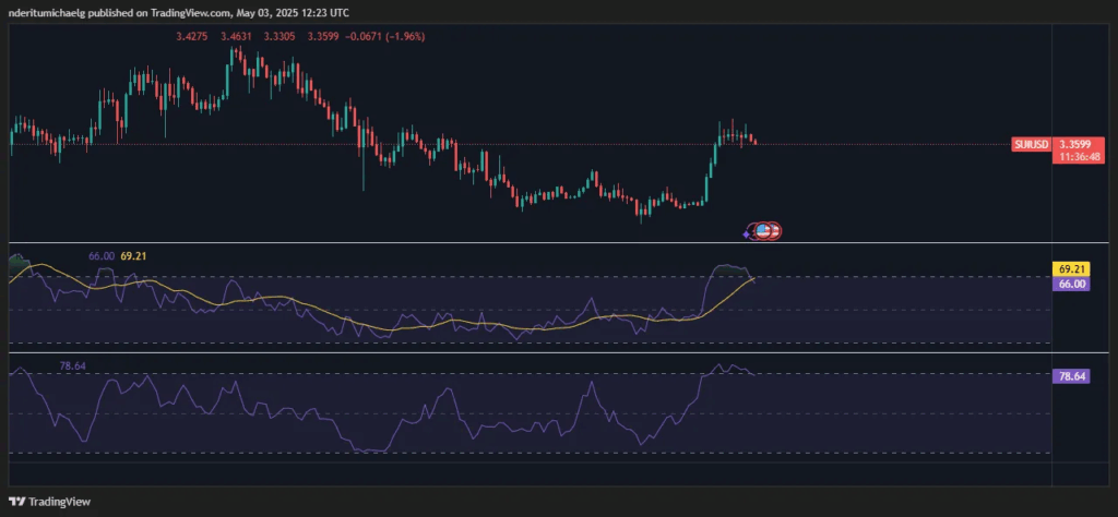 卖压的激增主要是由于SUI加密货币被严重超买,因此下跌的可能性相当高。但SUI还能跌多少呢?